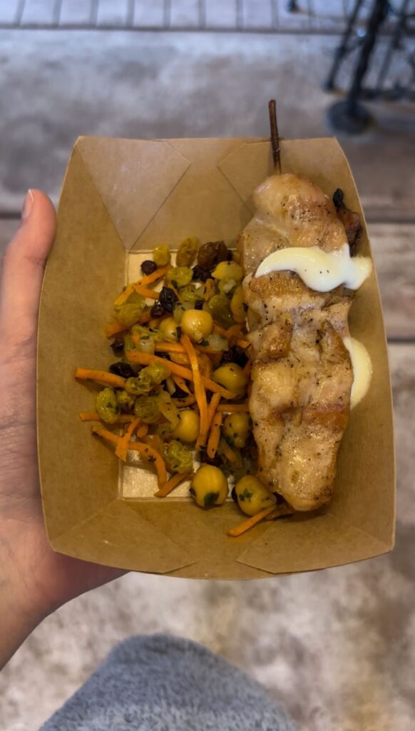 The Tangerine Café: Flavors of the Medina quick-service location is another one of my favorites in Epcot. They serve kebabs with aioli and a small salad for a low price, and it is the perfect snack. I recommend this to every person that goes to Epcot.